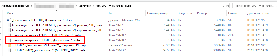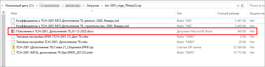 В случае, если используете другие настройки, то обязательно ознакомьтесь с документом «Пояснение к ТСН-2001, Дополнение 79_01-12-2025», входящим в архив с Нормативной базой