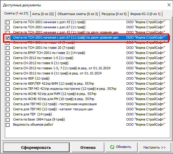 При корректных настройках программы и выборе шаблона «Смета по ТСН-2001 начиная с доп.67 (11граф) по двум уровням цен» в выходном документе строки будут соответствовать рекомендациям НИАЦ