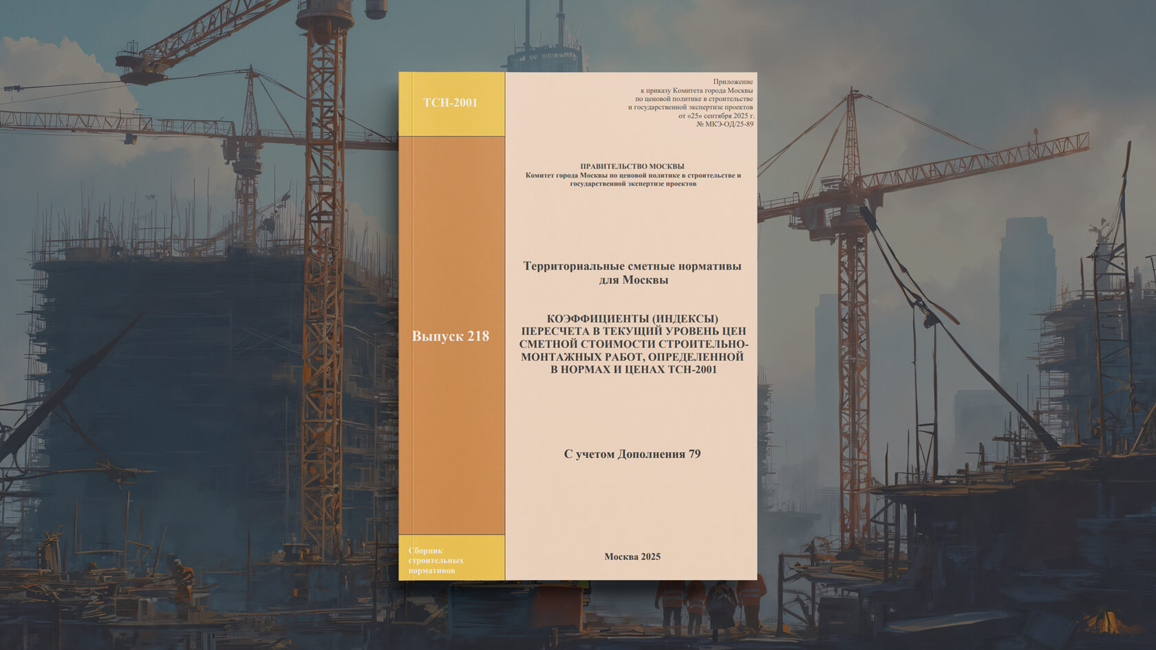 Утверждены Приказом от 25.09.2025 № МКЭ-ОД/25-89. «Об утверждении коэффициентов пересчета в текущий уровень цен сметной стоимости строительства. Выпуск 218 (Дополнение № 79)».